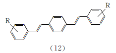 1948年开发出1,4-双苯乙烯苯(12)和4,4′-双萘三唑二苯乙烯(13)为母体的衍生物,用于棉、羊毛及合成纤维的增白。